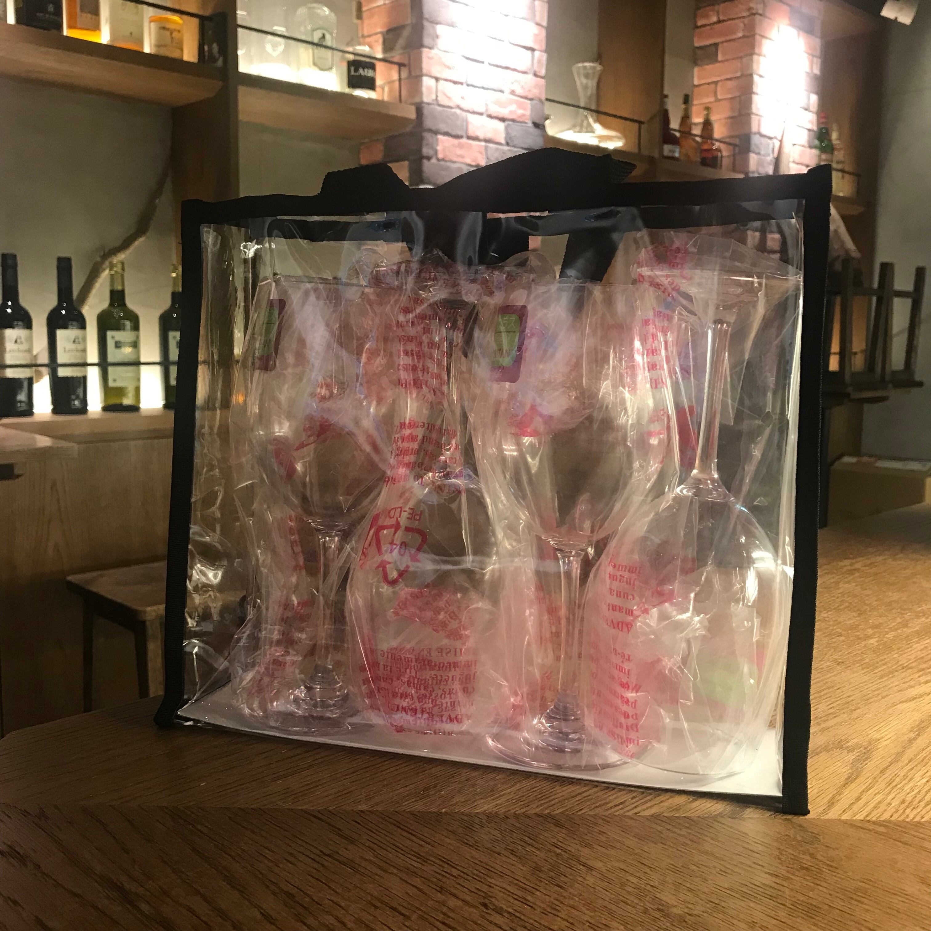 割れないグラス、トライタンです。ガラスに見えますが合成樹脂でできたワイングラス。衝撃、熱、食洗機にも強くBPA(ビスフェノールA)フリーです。私はいつも車のトランクに入れてあります。海や山、BBQなど野外で気兼ねなく使えます。ビニール製のトラベルバック入り。
